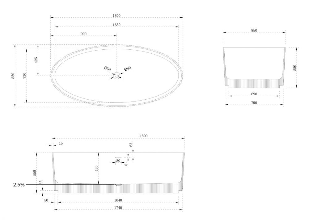 Ванна из искусственного камня ABBER Stein AS9627 180x85см белый матовый
