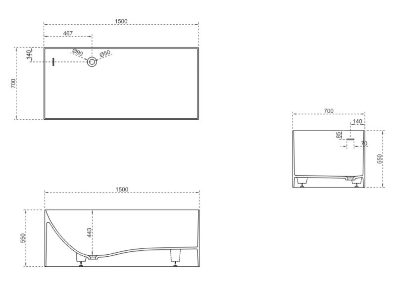 Ванна из искусственного камня ABBER Stein AS9640-1.5 150x70см белый матовый