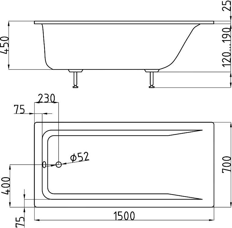 Ванна из искусственного камня AquaStone Арма 150x70см белый