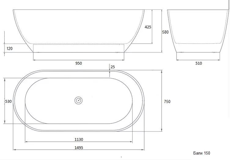 Ванна из искусственного камня AquaStone Бали 150x75см белый