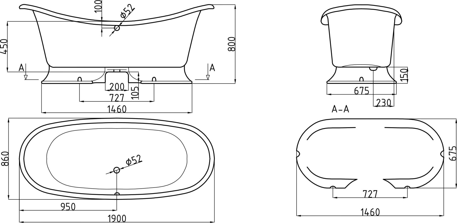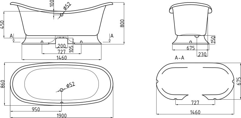Ванна из искусственного камня AquaStone Лиона 190x86см белый
