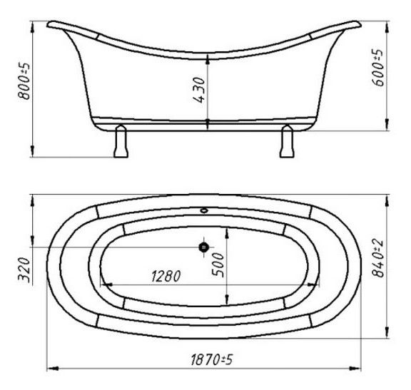 Размеры ванны Оливия: