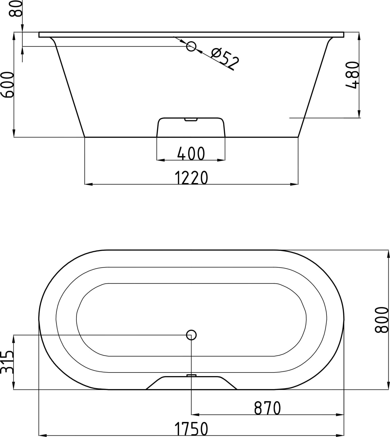 • диаметр слива: 5.2 см