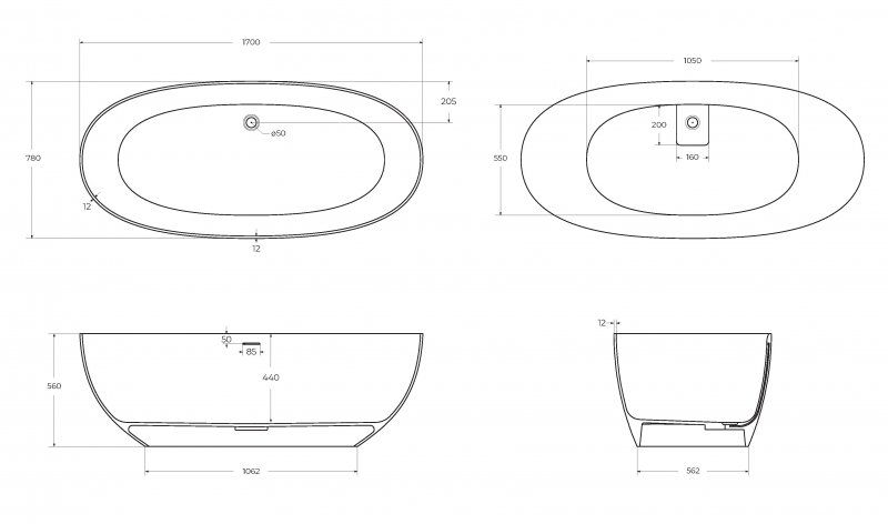Монтаж: отдельностоящая Форма: овальная Стилистика дизайна: современный Размер: 1700х780х560 мм ... Подробнее