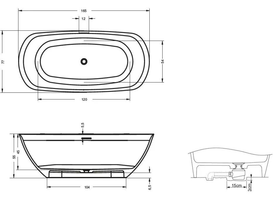 Ванна из искусственного камня Riho Bilo B128001105 165x77см белый