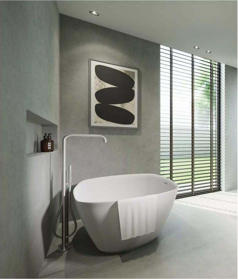 Твёрдая поверхность ванны устойчива к механическим повреждениям, гигиенична и химически нейтральна.