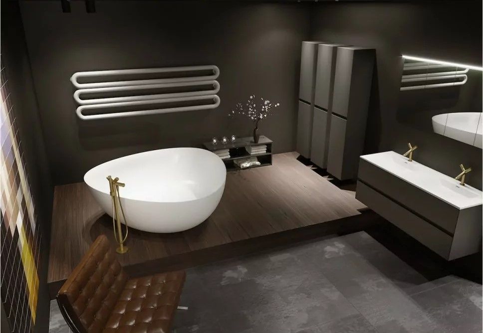 Эта просторная отдельно стоящая ванна RIHO Oviedo белого матового цвета - отличное решение для ванной комнаты отдыха. Чаша ванны в форме слегка закругленного треугольника изготовлена по технологии Solid Surface 2.0, которая позволяет получить сверхтонкие края. Большой формат 160 x 160 см позволяет с комфортом разместить двух человек в расслабляющей ванне. Ванна прекрасно сочетается с умывальником Ovideo из той же серии. Ванна Oviedo также доступна в двухцветном исполнении, где ее внешняя поверхность может быть окрашена в любой цвет из разнообразной палитры SIKKENS в глянцевом или матовом исполнении, а внутренняя поверхность останется матовой