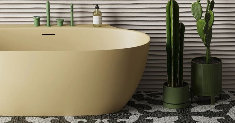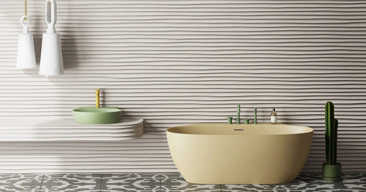 Эта модель соединяет в себе классическую овальную форму изголовий и спрятанный за ними пристенный борт. Благодаря такой конструкции создаётся впечатление отдельностоящей ванны, но сохраняется практичность плотного примыкания к стене и дополнительной поверхности для хранения косметических средств и аксессуаров. При желании здесь также можно разместить и смеситель. Более тонкая, детальная проработка формы чаши позволила уйти от классического понимания пристенной ванны с массивной боковой проекцией: блок, соприкасающийся со стеной, будто утоплен вдоль задней поверхности. Такова новая эстетика облегчённого дизайнерского решения Salini.