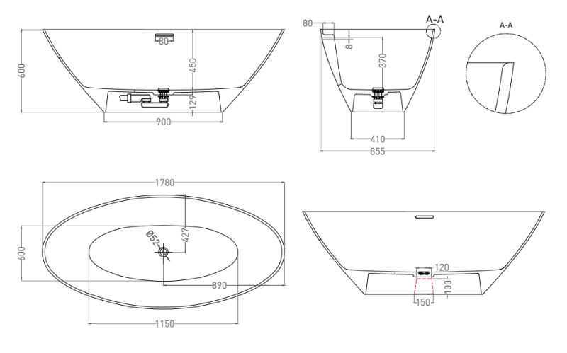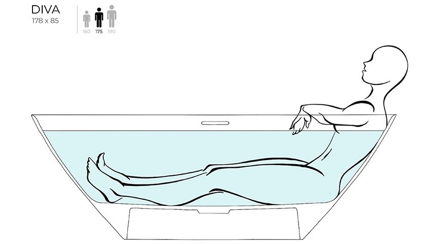 Ванна из искусственного камня Salini Diva S-Stone 102221MRH 178x85см RAL снаружи