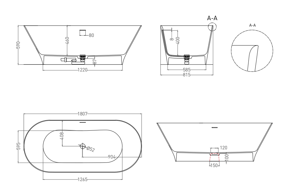 Ванна из искусственного камня Salini Mona S-Sense 102911GRH 180x80см RAL снаружи