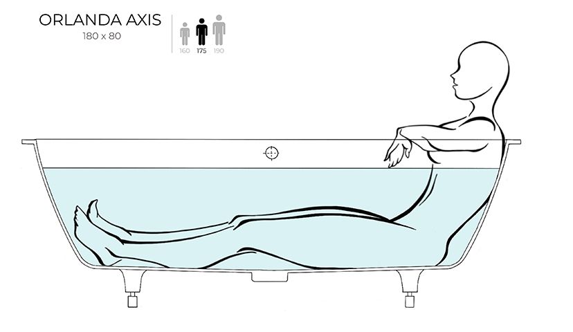 ORLANDA AXIS KIT 180 – универсальная ванна Salini из литого камня.Она предназначена как для полного или частичного встраивания, так и для любой установки — пристенной, угловой или отдельно стоящей. Ванна характеризуется одинаковым уклоном бортов и расположенными посередине сливом-переливом и донным клапаном. Название модели Axis («Ось») отражает характерную симметрию ванны во фронтальной проекции. Преимущества
