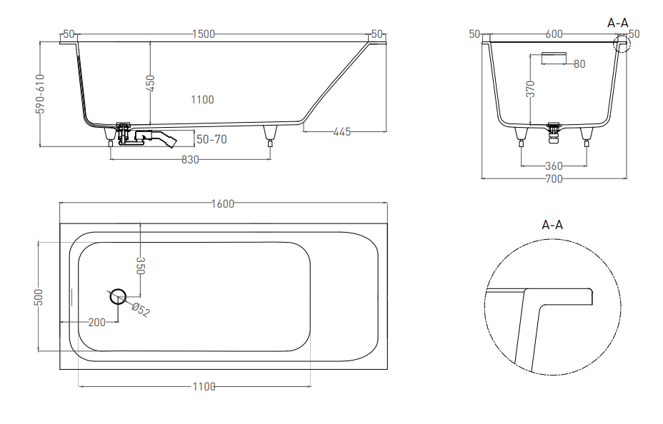 Ванна из искусственного камня Salini Orlanda Kit S-Sense 102115GRH 160x70см RAL снаружи
