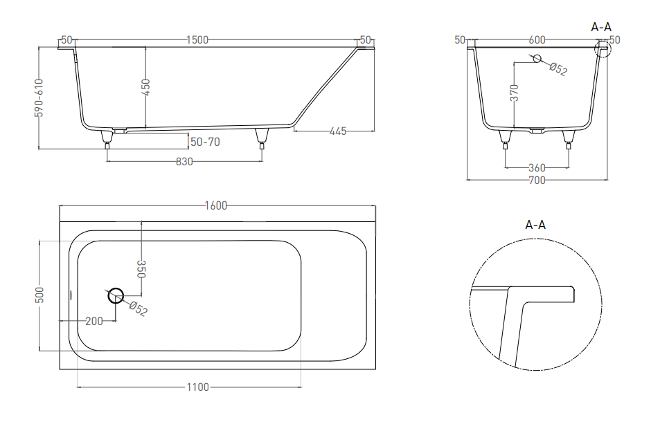Ванна из искусственного камня Salini Orlanda S-Sense 102015MRH 160x70см RAL снаружи