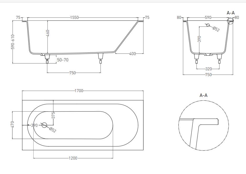 Стандартные размеры, см:170x75