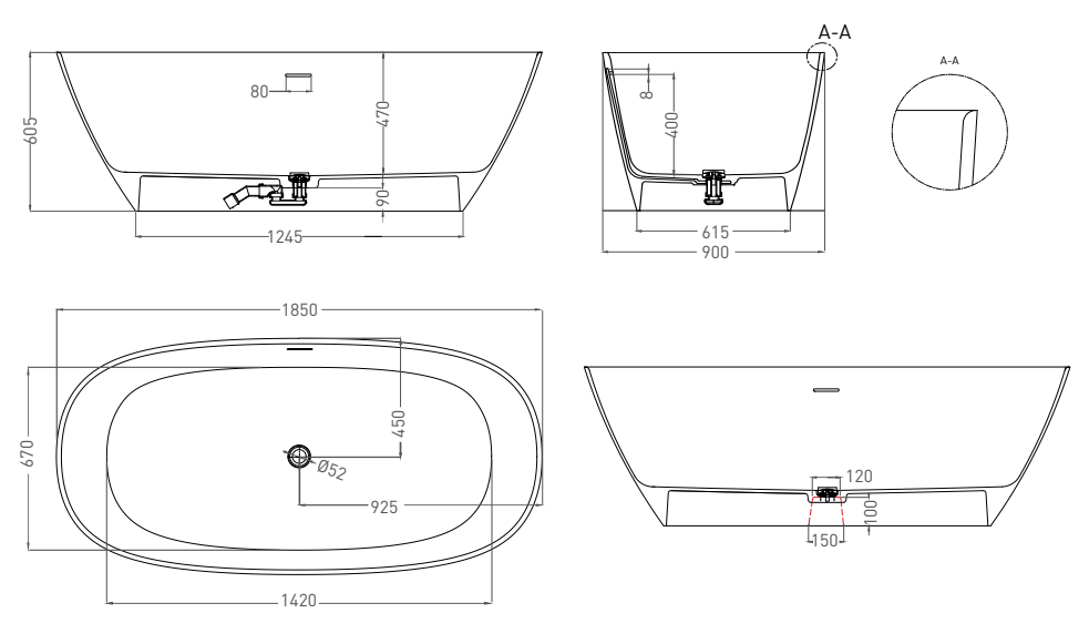 Ванна из искусственного камня Salini Sofia S-Sense 102519GRH 185x90см RAL снаружи