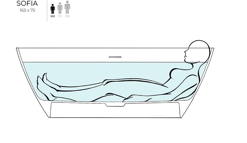 Ванна SOFIA хорошо смотрится как у стены, так и в центре комнаты — особенно в сочетании с удобной раковиной современного силуэта из этой же серии. Преимущества