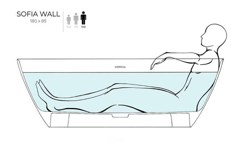 Пристенная ванна SOFIA WALL — практичное решение, когда не хочется терять ни сантиметра ценной площади ванной комнаты. Широкий бортик позволит расположить на нём необходимые туалетные принадлежности, а его ровное примыкание к стене упростит принятие душа.