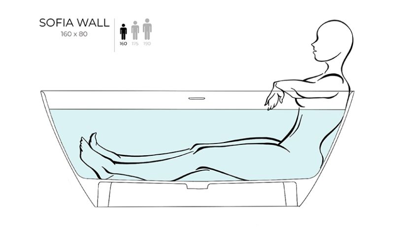 Пристенная ванна SOFIA WALL — практичное решение, когда не хочется терять ни сантиметра ценной площади ванной комнаты. Широкий бортик позволит расположить на нём необходимые туалетные принадлежности, а его ровное примыкание к стене упростит принятие душа.