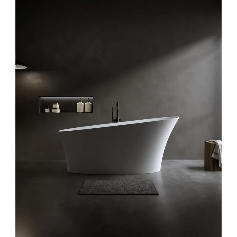Поверхность ванны приятная на ощупь и не холодная благодаря низкому уровню теплопроводности, что делает процесс эксплуатации очень приятным.