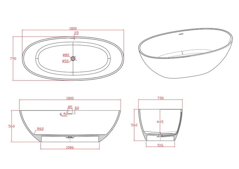 Поверхность ванны приятная на ощупь и не холодная благодаря низкому уровню теплопроводности, что делает процесс эксплуатации очень приятным.