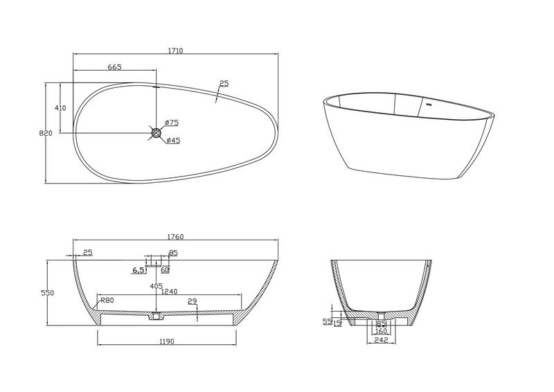 Поверхность ванны приятная на ощупь и не холодная благодаря низкому уровню теплопроводности, что делает процесс эксплуатации очень приятным.
