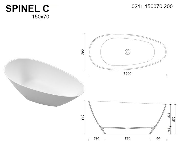 Ванна из искусственного камня Whitecross Spinel C 0211.150070.200 150x70см белый матовый купить