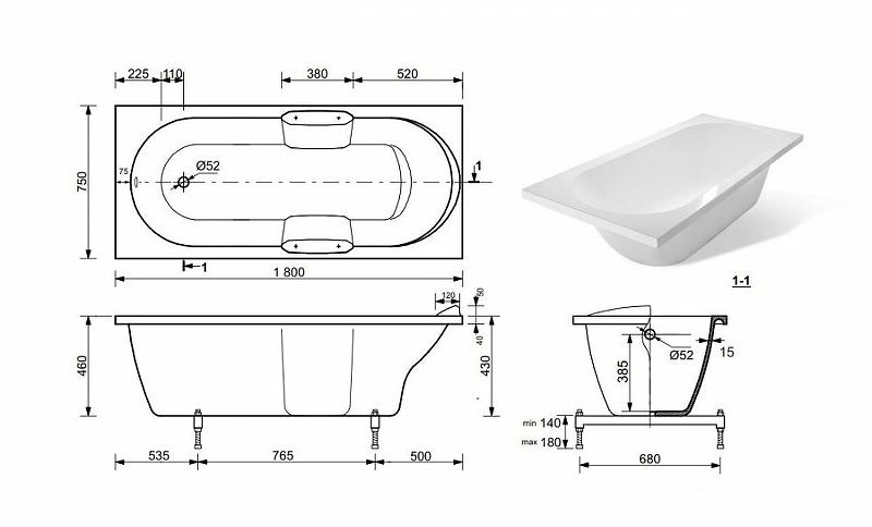Ванна из литьевого мрамора Эстет Камелия ФР-00001032 180x75см белый купить
