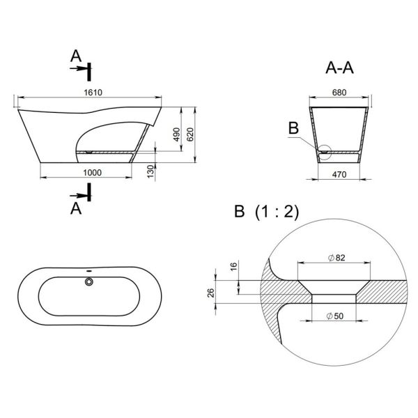 Ванна отдельностоящая Holbi Afrodita 161x68см бетон 2.01.005.44.4