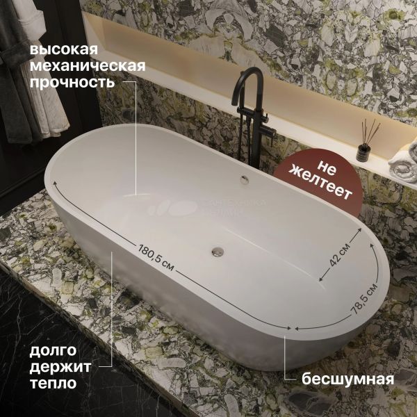 Ванна STWORKI Берген 180x80 см отдельностоящая овальная из искусственного камня купить