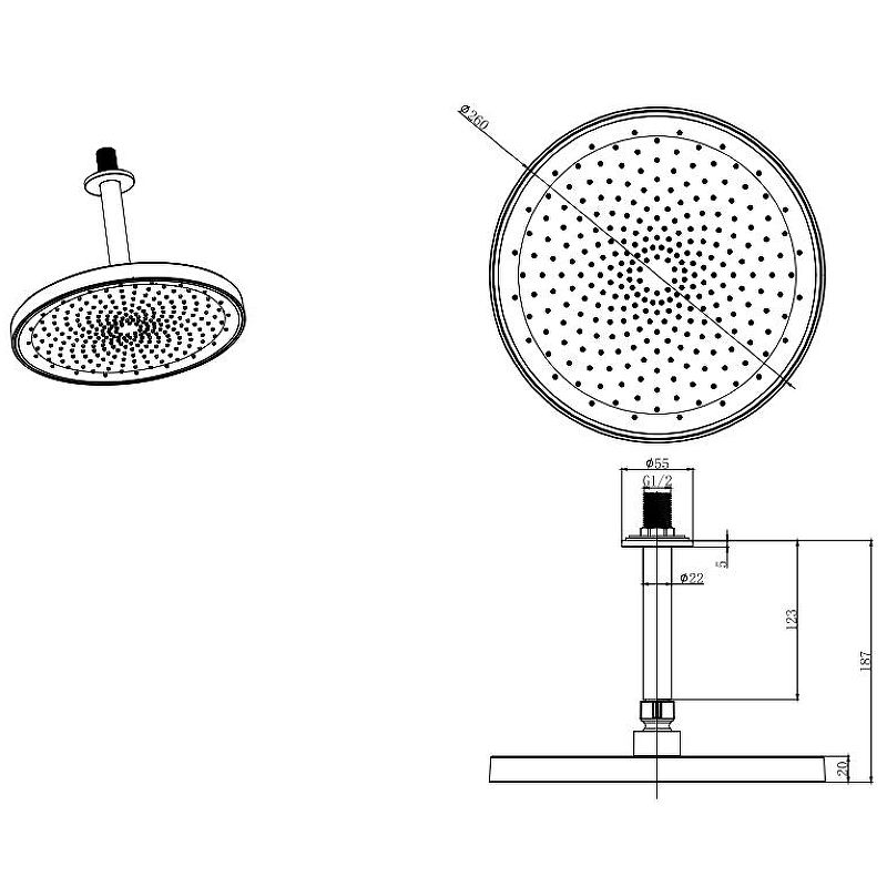 Верхний душ Aquatek AQ2070MB Черный матовыйХарактеристики: