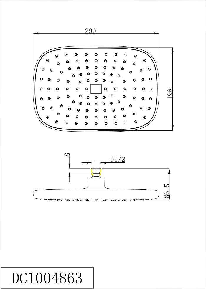 Верхний душ DQ DC1004863. Превосходный дизайн изделия дополнит большинство ванных комнат в современном стиле.