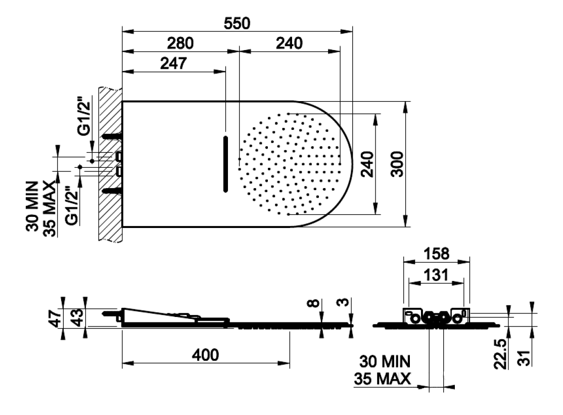 Верхний душ Gessi Tre Millimetri размером 550x300 мм и цвете Black Metal PVD — это инновационное сочетание стиля и функциональности, созданное для максимального комфорта и эстетики. Этот душ оснащен двумя режимами подачи воды: мягкий дождь для расслабления и эффектный водопад для интенсивного массажа. Ультратонкая конструкция толщиной всего 3 мм подчеркивает современный минималистичный дизайн, идеально дополняя интерьер ванной комнаты.
