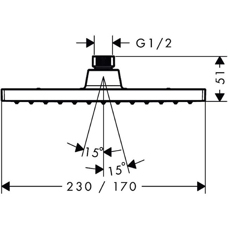Размер душевого диска: 230 x 170 мм.