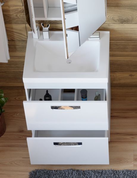 2 ящика; ручка врезная металлическая хромированная, опоры квадратные регулируемые.