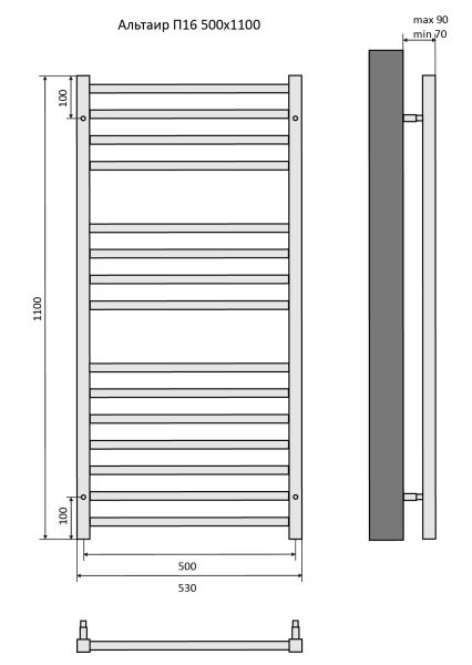 Полотенцесушитель водяной Aquatek (Акватек) Альтаир П16 500х1100 мм, черный муар, подключение нижнее/диагональное, сверхпрочная пищевая нержавеющая сталь AISI 304L, гарантия 10 летХарактеристики:30х30/20х20,без фитинговКомплектация:полотенцесушитель;