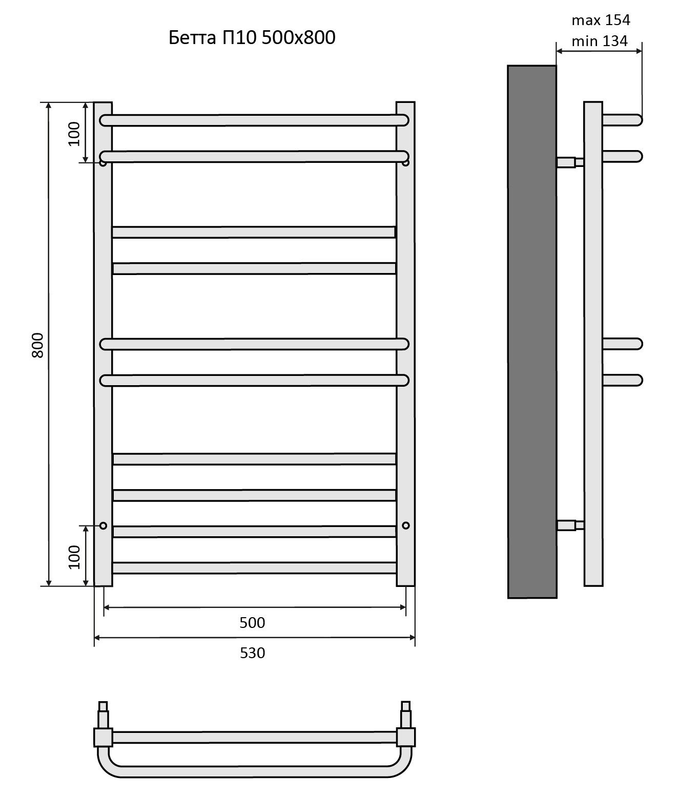 Полотенцесушитель водяной Aquatek (Акватек) Бетта П10 500х800 мм, черный муар, подключение нижнее/диагональное, сверхпрочная пищевая нержавеющая сталь AISI 304L, гарантия 10 летХарактеристики: 30х30/18,без фитинговКомплектация:полотенцесушитель;