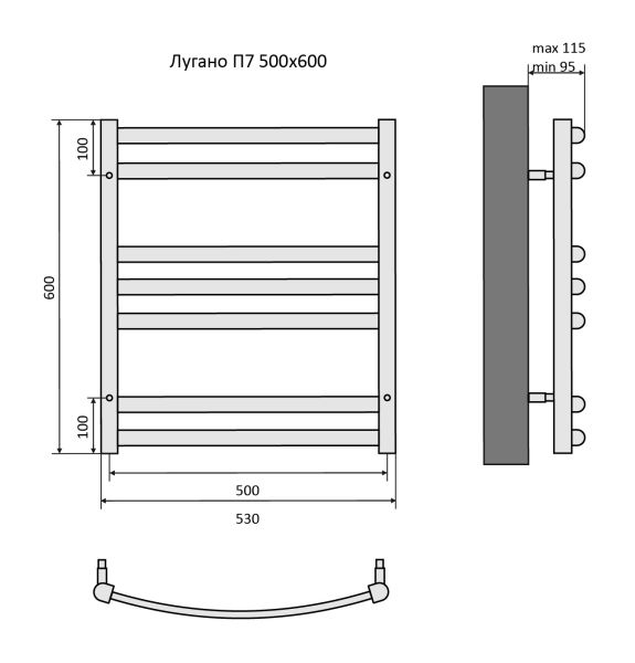 Полотенцесушитель водяной Aquatek (Акватек) Лугано П7 500х600 мм, подключение нижнее/диагональное, сверхпрочная пищевая нержавеющая сталь AISI 304L, гарантия 10 летХарактеристики:Dх29,без фитинговКомплектация:полотенцесушитель;