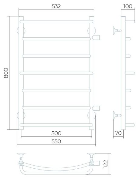 Полотенцесушитель изготовлен из нержавеющей стали — износостойкого и не подверженного коррозии материала, легко выдерживающего агрессивную среду систем отопления.