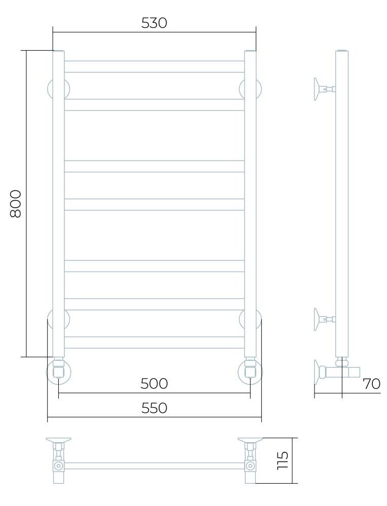 Полотенцесушитель изготовлен из нержавеющей стали — износостойкого и не подверженного коррозии материала, легко выдерживающего агрессивную среду систем отопления.