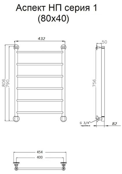 Водяной полотенцесушитель Тругор Аспект НП 1 80x40см хром Аспект1/нп8040