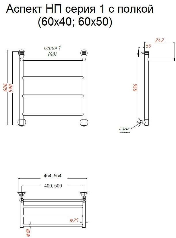 Водяной полотенцесушитель Тругор Аспект НП 1 П с полкой 60x50см хром Аспект1/нп6050П