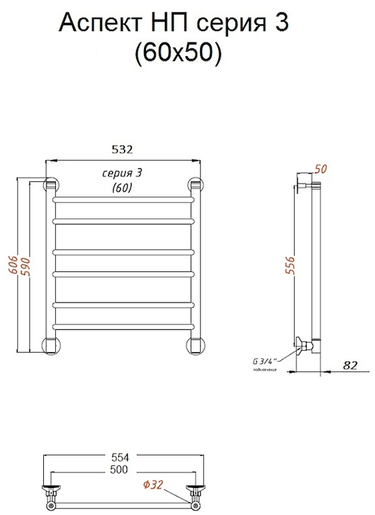 Водяной полотенцесушитель Тругор Аспект НП 3 60x50см хром Аспект3/нп6050