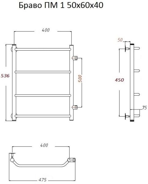 Водяной полотенцесушитель Тругор Браво ПМ 1 50x60x40см хром Браво1/ПМ506040