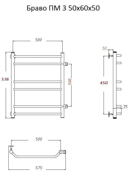 Водяной полотенцесушитель Тругор Браво ПМ 3 50x60x50см хром Браво3/ПМ506050