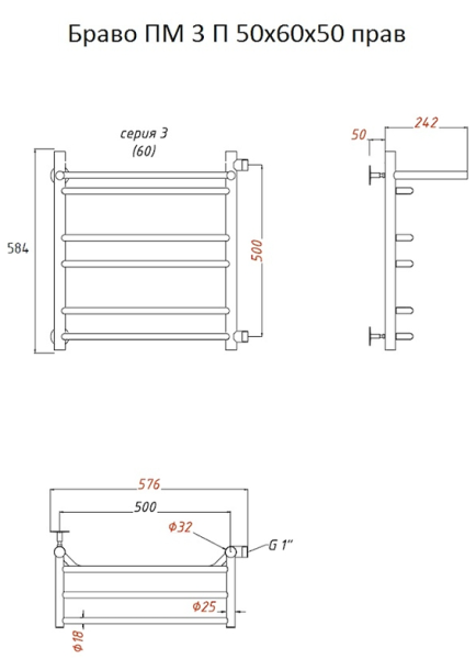 Водяной полотенцесушитель Тругор Браво ПМ 3 П 50x60x50см с полкой правый хром Браво3/ПМ506050Пправ