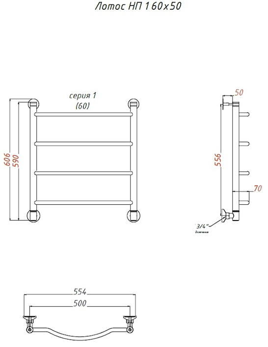 Водяной полотенцесушитель Тругор Лотос НП 1 60x50см хром Лотос1/нп6050