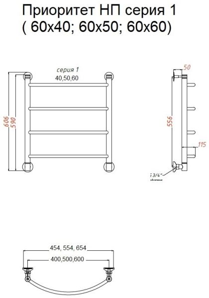 Водяной полотенцесушитель Тругор Приоритет НП 1 60x50см хром Приоритет1/НП6050