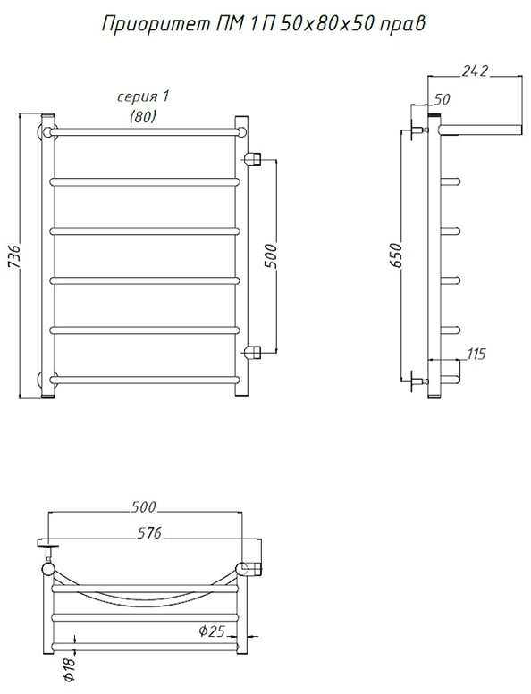 Водяной полотенцесушитель Тругор Приоритет ПМ 1 50x80x50см с полкой правый хром Приоритет1/ПМ508050Ппра купить