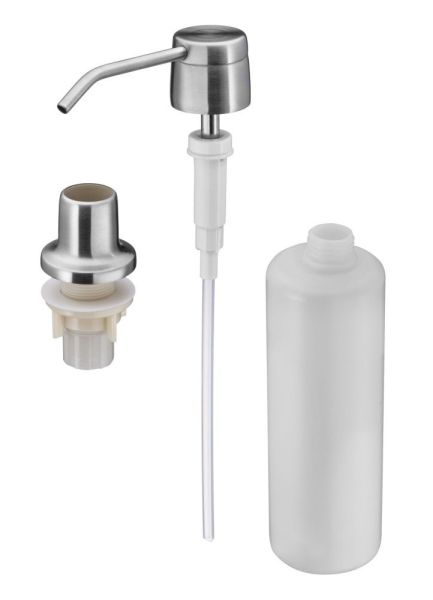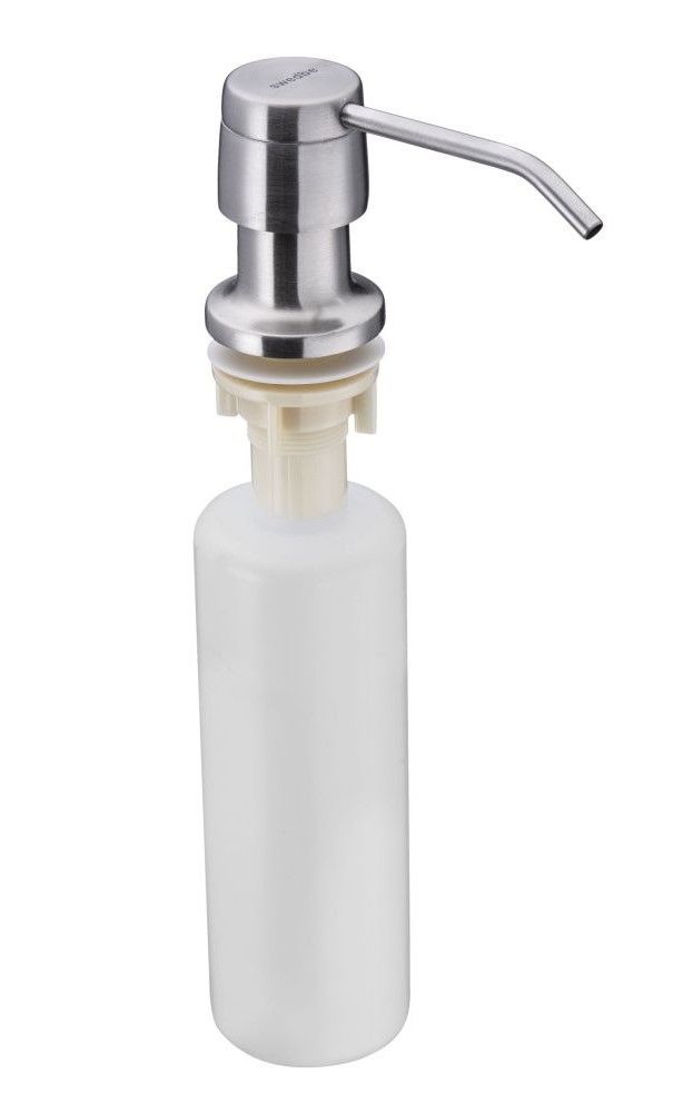 Встраиваемый дозатор для мыла нержавеющая сталь, ABS - пластик.Максимальная толщина столешницы 37 ммЦвет: нержавеющая сталь.Объем: 330 мл
