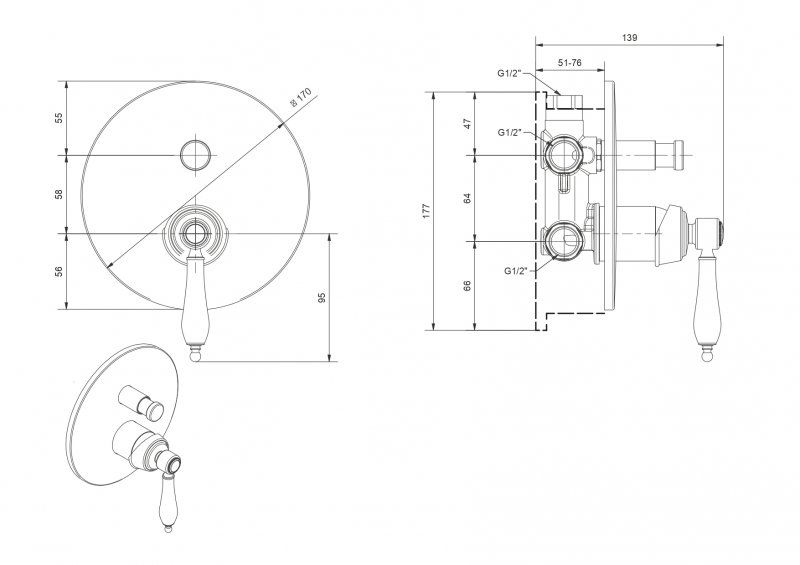 Встраиваемый однорычажный смеситель для душа с переключателем Cezares APHRODITE-VDIM2-01-Bi